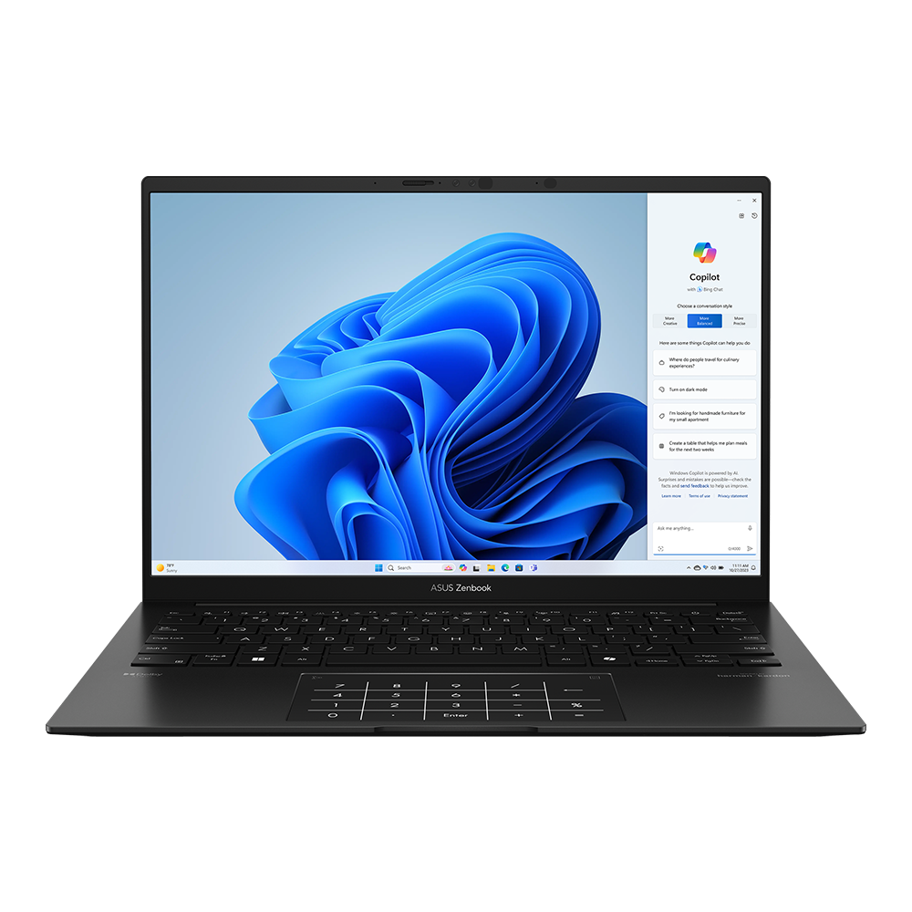 AMD Ryzen AI, ASUS ErgoSense klawiaturasy we sensor paneli, barmak yzlaryna garşy sensor paneli, NumberPad 2.0, MIL-STD 810H harby derejeli noutbuk çydamlylygy