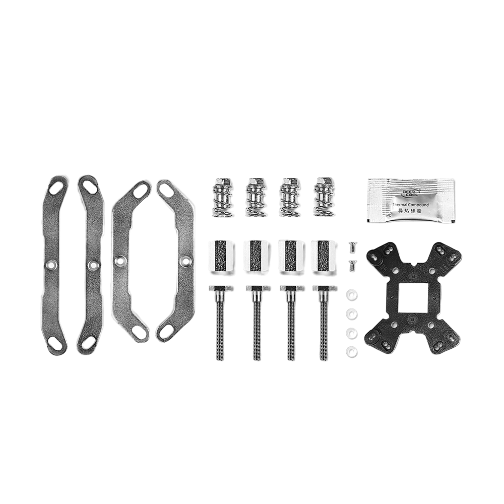 Heatsink, 1 janköýer, metal platforma gurnama toplumy, AMD we INTEL rozetkalary, dört sany ýaýly nurbat, termal pasta, gurnama gollanmasy