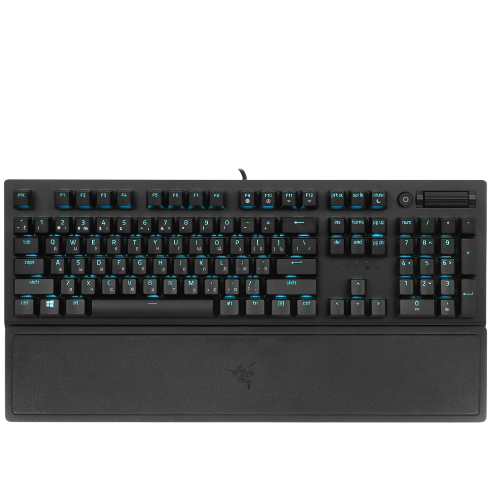 Iňlis, köp dilli düzüliş, RAZER-iň resmi logotipi we dinamiki RGB yşyklandyryş effektleri, berk bir bölekli çarçuwa, arwahlara garşy funksiýaly sessiz we jogapkär düwmeleri, dökülmeýän dizaýn, aýratyn media dolandyryş düwmeleri, ýagtylygy, ýagtylyk režimlerini we oýun režimini sazlamak üçin çalt giriş düwmeleri we klawiatura gulplaýyş režimi.
