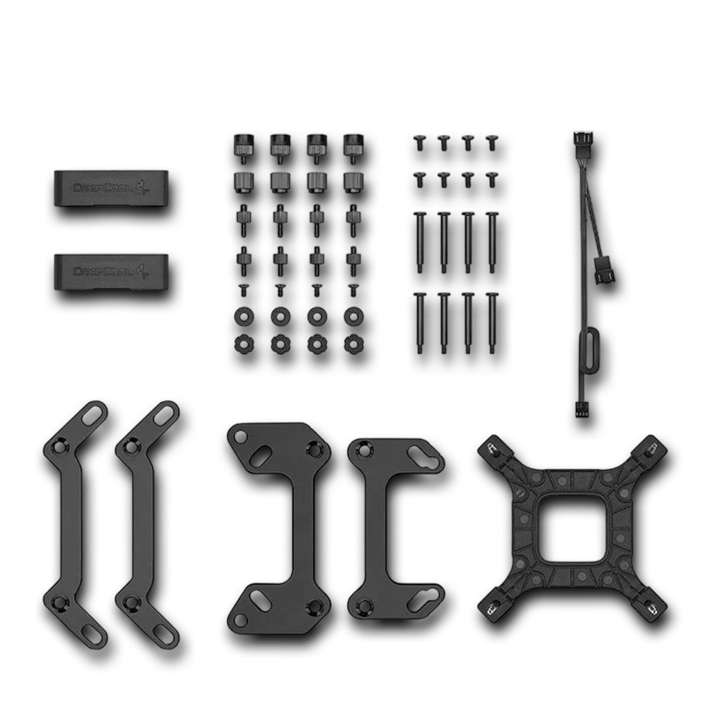 Getirmegiň gerimi: Heatsink, üç janköýer, ähliumumy berkitme plastinka, gurnama toplumy (Intel), gurnama toplumy (AMD), nurbat 4 sany kompýuter, stikerler, gurnama gollanmasy