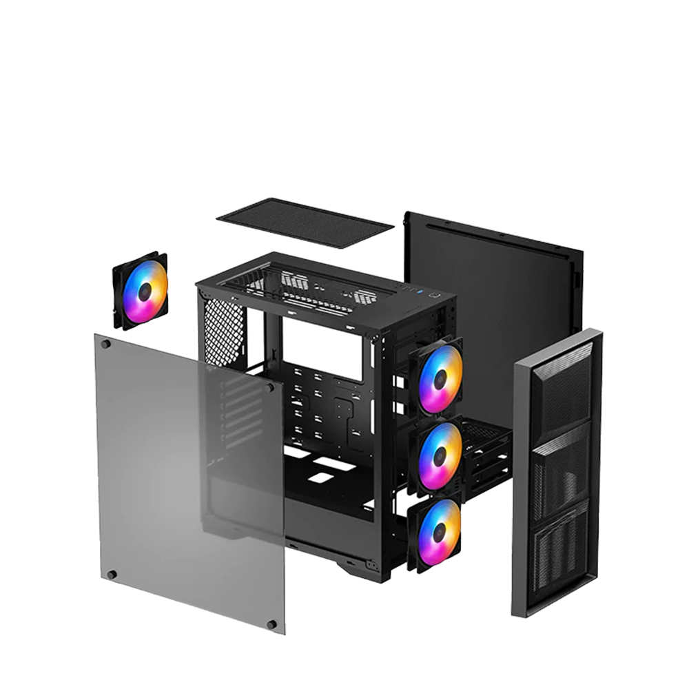 MATREXX 50 MESH 4FS dört 120 mm janköýer bilen öňünden gurlan: üçüsi öň we biri yz. Janköýerler öňünden gurlan üç reňkli LED kombinasiýasy bilen yşyklandyrylýar, diňe güýji dakyň we görmek tejribesinden lezzet alyň.