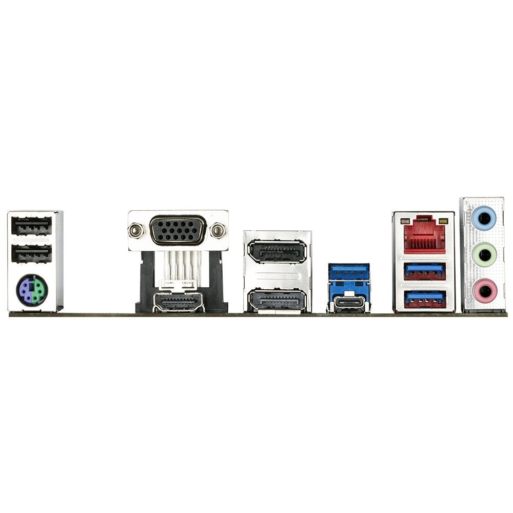 2 USB 2.0 / 1.1 port, 1 PS / 2 klawiatura / syçan porty, 1 D-Sub port, 1 HDMI 2.0 port, 2 DisplayPort porty, 3 USB 3.2 Gen 1 port, USB 3.2 goldawly 1 USB Type-C® porty Gen 2, 1 RJ-45 port, 3 ses jak.