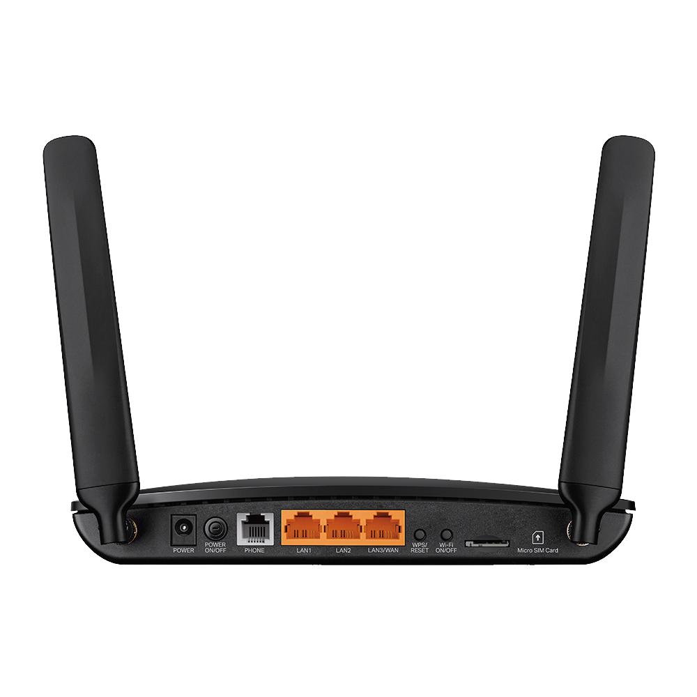 Interfeýsler - 1 WAN porty, 3 LAN porty, 1 nano-SIM kart ýeri, 1 güýç porty