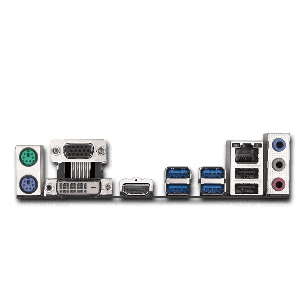1 PS / 2 klawiatura / syçan porty 1 DVI-D port 1 HDMI port 2 USB 3.1 Gen 2 Type-A portlar (gyzyl) 4 USB 3.1 Gen 1 portlar 2 USB 2.0 / 1.1 portlar 1 RJ-45 port 6 ses jaklary