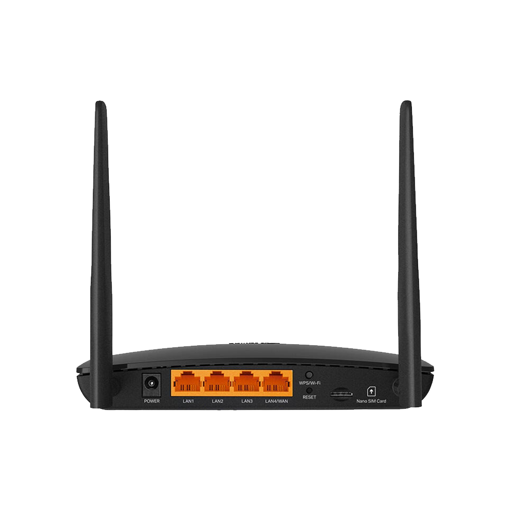 1 WAN/LAN porty (10/100 Mbps), 3 LAN porty (10/100 Mbps), 1 Nano SIM-kart sloty, 1 güýç porty